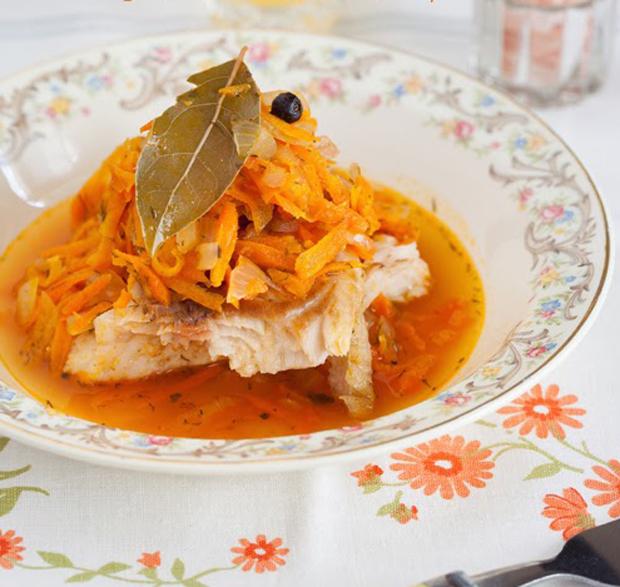 Рыба под маринадом из овощей и различных добавок выглядит аппетитно и обладает насыщенным ароматом. Мясо судака получается нежным, пикантным и сочным.
