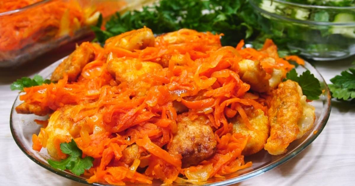 Очень вкусный судак с луком и морковью
